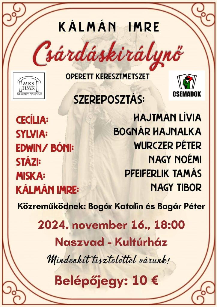 Meghívó a Kálmán Imre operettjének keresztmetszet-előadására.