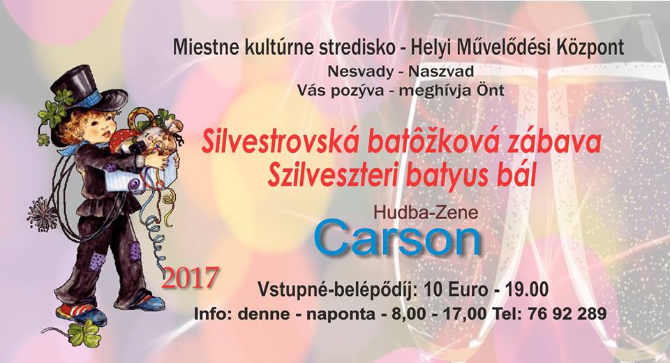 Helyi Művelődési Közpönt meghívja Önt a Szilveszteri batyus bálba. A talpalávalóról a Carson zenekar gondoskodik.