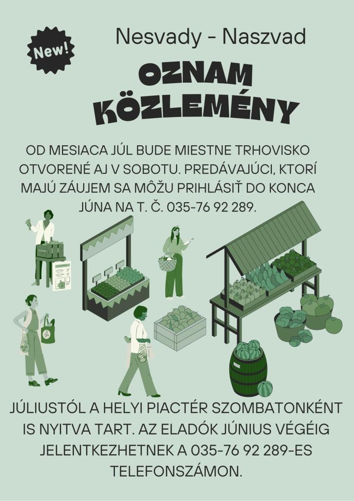 Od mesiaca Júl bude miestne trhovisko otvorené aj v sobotu. Záujemcovia sa môžu prihlásiť do konca júna.
